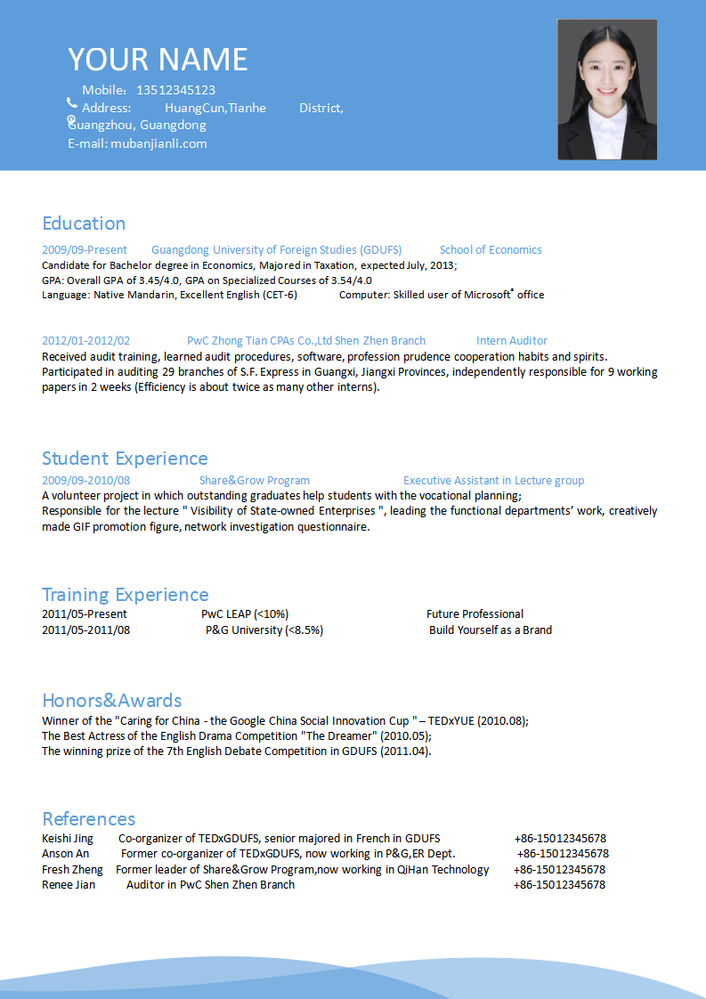 大学生个人简历英文版 声明:本站所有模板均为:word格式简历模板,遇到问题联系客服微信:ivx168 ;【付费模板购买后F5刷新一下】 收藏 海报 分享链接:https://www.mubanjianli.com/1130.html 分享到 :