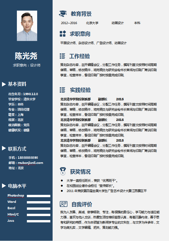 设计师求职简历模板下载 声明:本站所有模板均为:word格式简历模板,遇到问题联系客服微信:ivx168 ;【付费模板购买后F5刷新一下】 收藏 海报 分享链接:https://www.mubanjianli.com/168.html 分享到 :