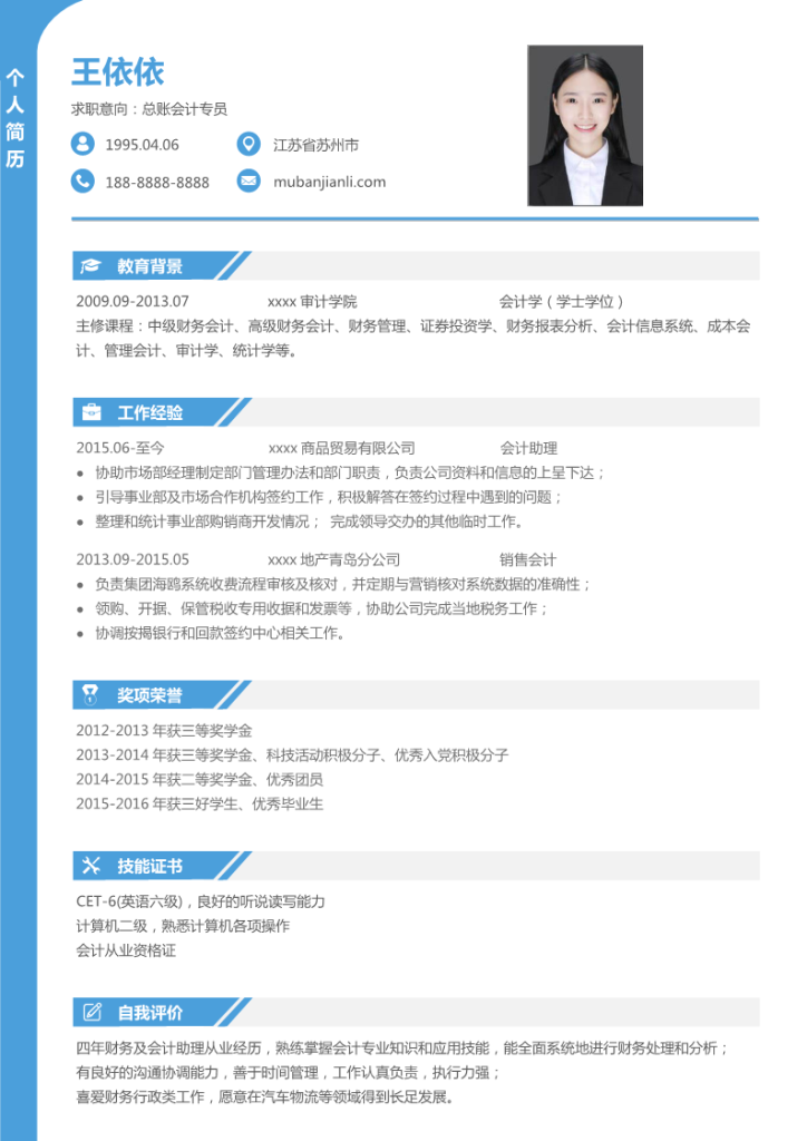 会计求职简历模板 声明:本站所有模板均为:word格式简历模板,遇到问题联系客服微信:ivx168 ;【付费模板购买后F5刷新一下】 收藏 海报 分享链接:https://www.mubanjianli.com/44171.html 分享到 :