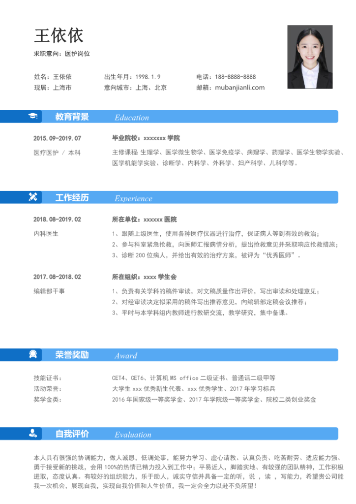 医护岗位求职简历下载 声明:本站所有模板均为:word格式简历模板,遇到问题联系客服微信:ivx168 ;【付费模板购买后F5刷新一下】医生护士 收藏 海报 分享链接:https://www.mubanjianli.com/44175.html 分享到 :