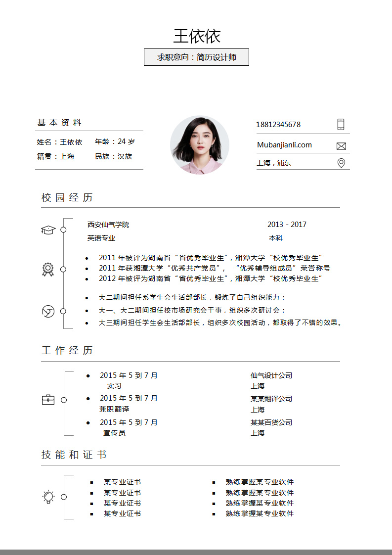 简约时尚单页word模板 声明:本站所有模板均为:word格式简历模板,遇到问题联系客服微信:ivx168 ;【付费模板购买后F5刷新一下】 收藏 海报 分享链接:https://www.mubanjianli.com/509.html 分享到 :