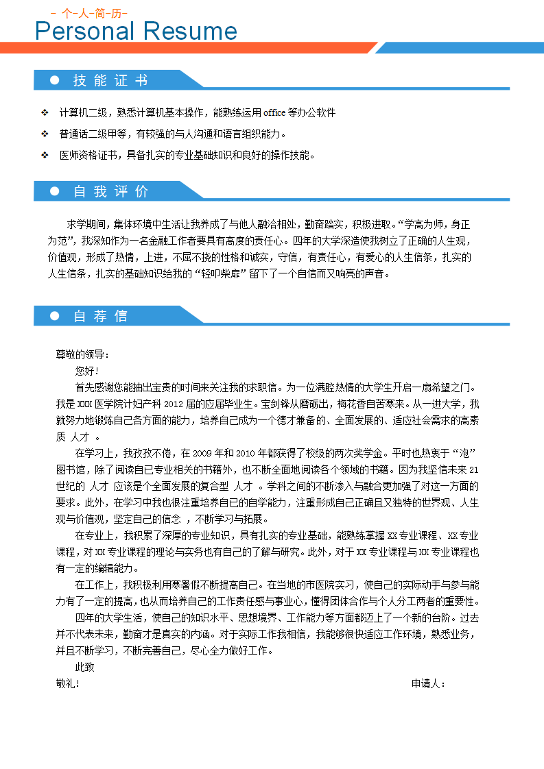 临床医生求职简历word四页蓝色时尚稳重模板 临床医生求职简历word四页蓝色时尚稳重模板 声明:本站所有模板均为:word格式简历模板,遇到问题联系客服微信:ivx168 ;【付费模板购买后F5刷新一下】医生 收藏 海报 分享链接:https://www.mubanjianli.com/533.html 分享到 :